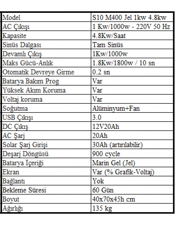 Kombi, TV, PC, Aydınlatma, Modem, buzdolabı şeklinde 20-30 saat kullanım sağlar.